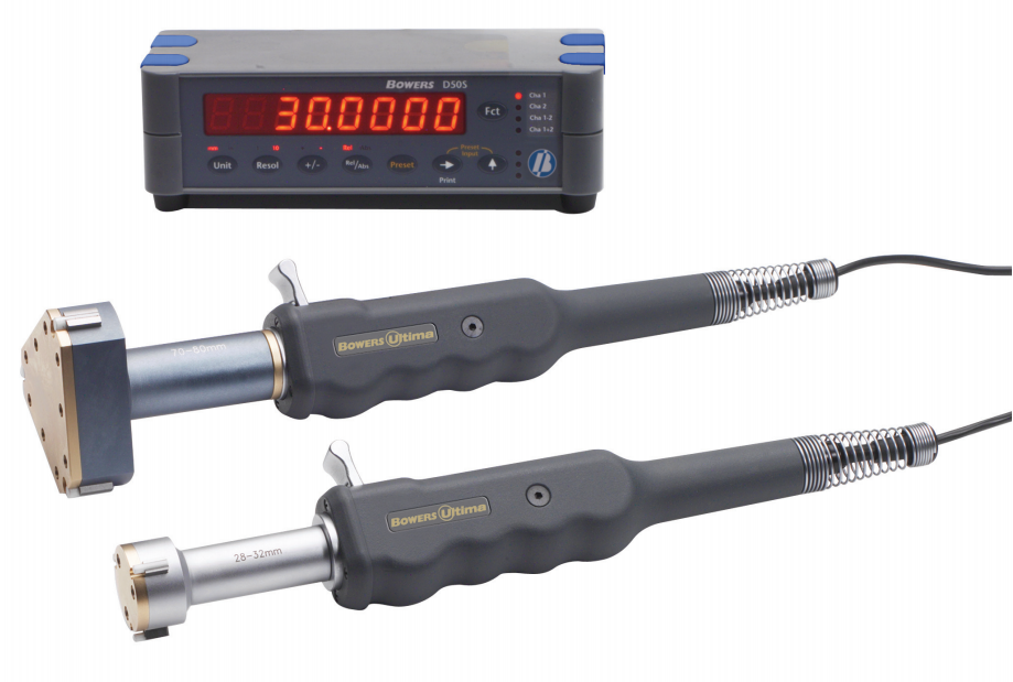Ultima – Electronic Bore Gauge The Bowers Ultima electronic bore gauging system offers a choice of resolutions up to 0.0001mm. Featuring FASTFIT twin-start threads for quick fi tting of measuring heads and extended ranges (above 14mm) the Ultima system’s simple lever operation and constant measuring force provide outstanding repeatability and ease of use. Features