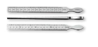 • The gauge is made of quality tool steel 11mm (7/16”) wide by 160mm (6.1/4”) long and is accurately tapered throughout its entire length for quick and convenient measuring of slot widths, etc. • one side is graduated from 0.010” to 0.150” in thousandths of an inch and the reverse side from 0.3mm to 4mm in onetwentieth of a mm (0.05mm).